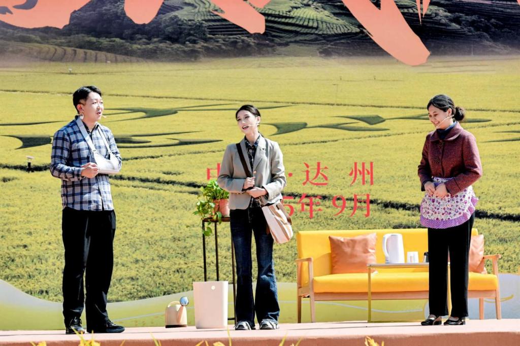 巴渠大地庆丰收,巴山水萃展新景。为庆祝第八个中国农民丰收节,9月23-24日,达州市2025年中国农民丰收节活动开幕式暨水产美食消费季活动启动仪式在大竹县乌木镇广子村举行。学院教师丁伟、宋美彤指导,学生周冠夫、周梓琛、屈雅美出演的乡村振兴题材小品《弄拙成巧》受邀参加开幕式演出。