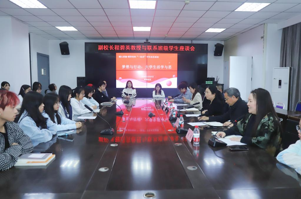 座谈会上,程碧英副校长结合自身经历,就学业规划、成长成才等话题与同学们亲切交流,耐心解答同学们学习、就业、生活等方面的困惑,鼓励大家明确目标、勤学笃行,在实践中锤炼本领。互动环节中,同学们围绕成长发展相关问题积极提问,程校长逐一回应,鼓励大家以积极心态面对生活和学习,逐梦前行。