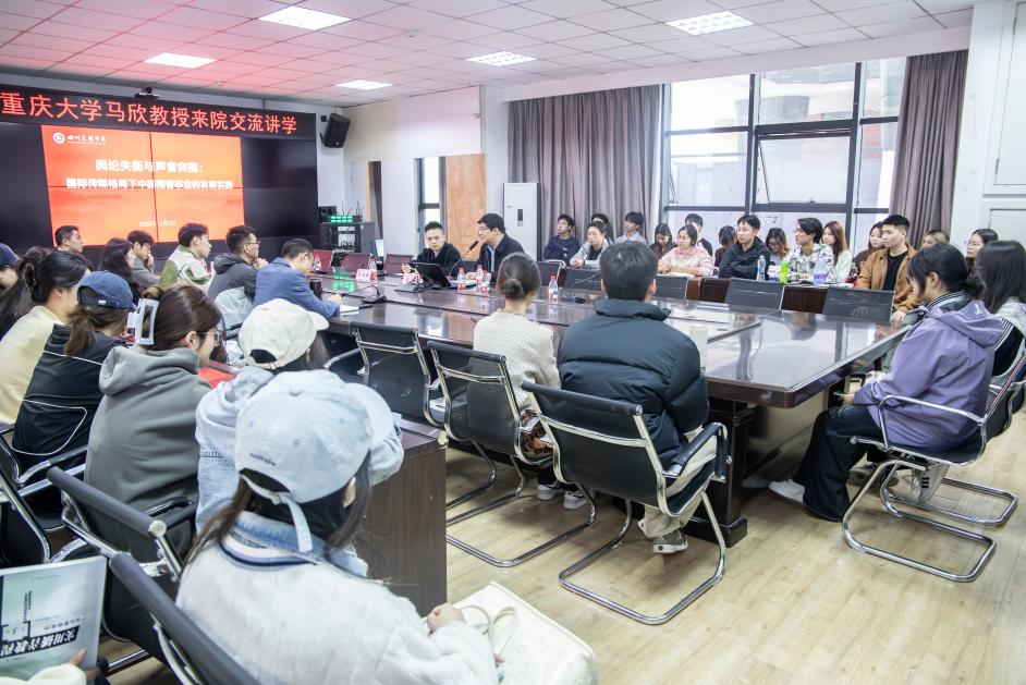 11月3日下午,我院特邀国家语委语言文字督导专家、中国高校影视学会播音主持专委会副主任委员、重庆大学美视电影学院副院长、硕士生导师马欣教授作题为“舆论失衡与声音突围:国际传媒格局下中国播音事业的发展实践”的学术讲座。讲座由播音与主持艺术教研室主任李林翰主持,播音与主持艺术专业师生参与了此次活动。