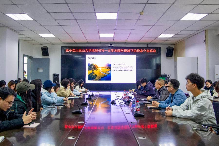 3月24日下午,我院特邀中国作家协会会员、四川省散文学会党支部书记、副会长张中信在艺术传媒大楼1007会议室开展题为“大巴山文学地理书写——我的文学创作轨迹剖析”的学术讲座。讲座由姚春副教授主持,我院部分师生代表参加。