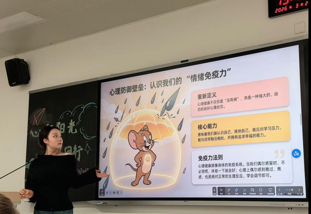 同时,班会还详细介绍了学校心理健康与发展中心服务内容、预约流程、咨询渠道,帮助同学们消除求助顾虑,明确获得专业支持的方式,鼓励大家在遇到心理困扰时积极求助。