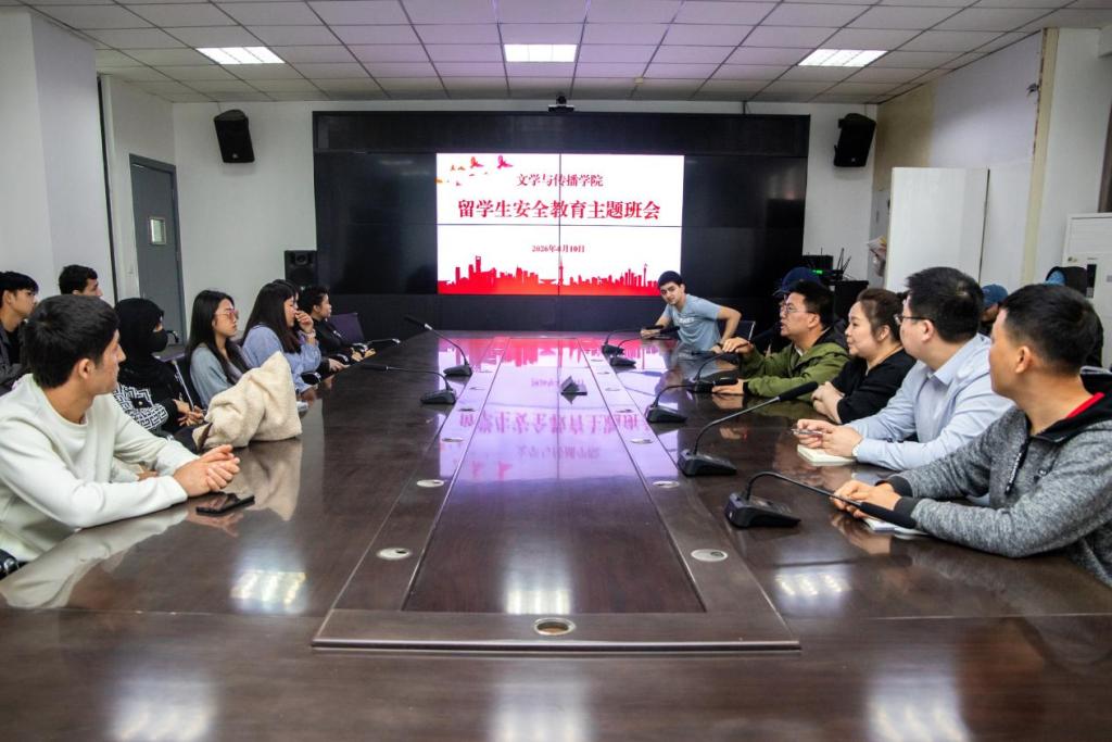 4月10日上午,我院留学生安全教育主题班会在1007会议室顺利召开。2025级留学生班级辅导员陈阵主讲,学院党委副书记周萍、学工办主任文敏熙、2024级留学生班级辅导员李川北出席,2024级1班、2025级1班全体留学生参加。